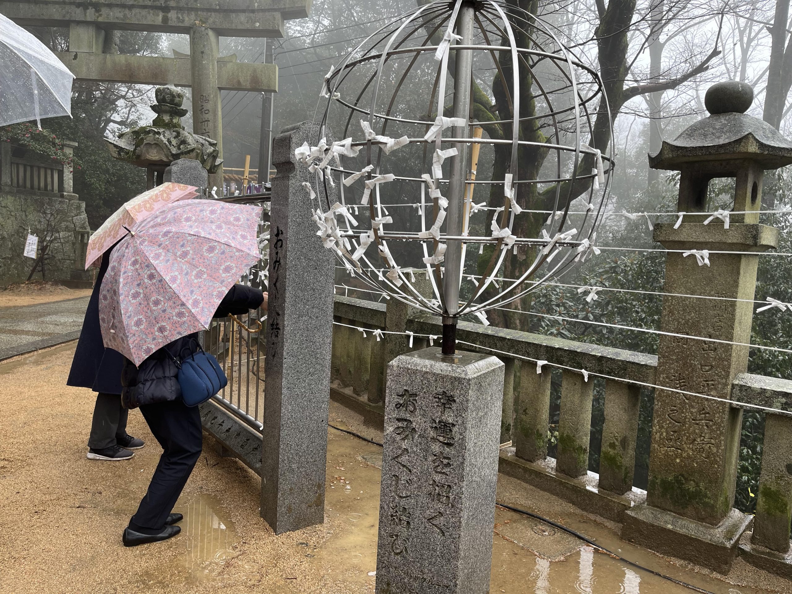 今年はあいにくの⾬模様。傘をさして霧がかかった参道を歩きました。寒いね、と⾔っていたのも束の間。⾸にあったマフラーはいつの間にか⼿に持っていました。